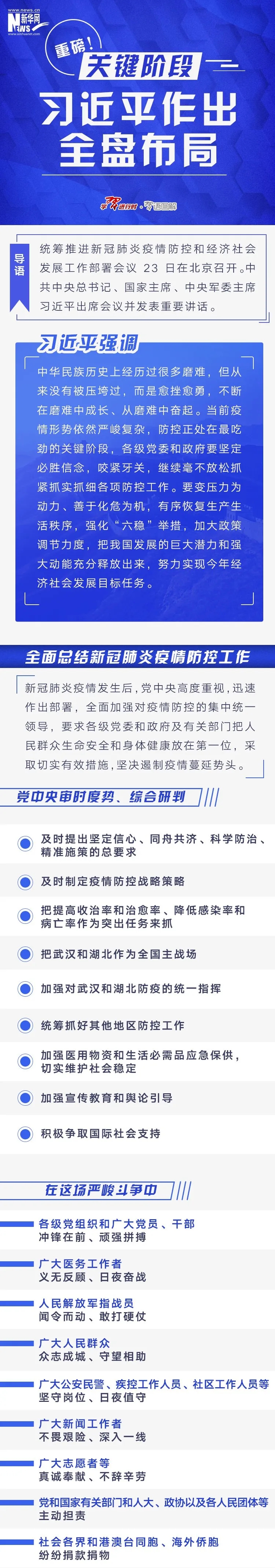 2月23日,統(tǒng)籌推進(jìn)新冠肺炎疫情防控和經(jīng)濟社會發(fā)展工作部署會議在北京召開。中共中央總書記、國家主席、中央軍委主席習(xí)近平出席會議并發(fā)表重要講話。