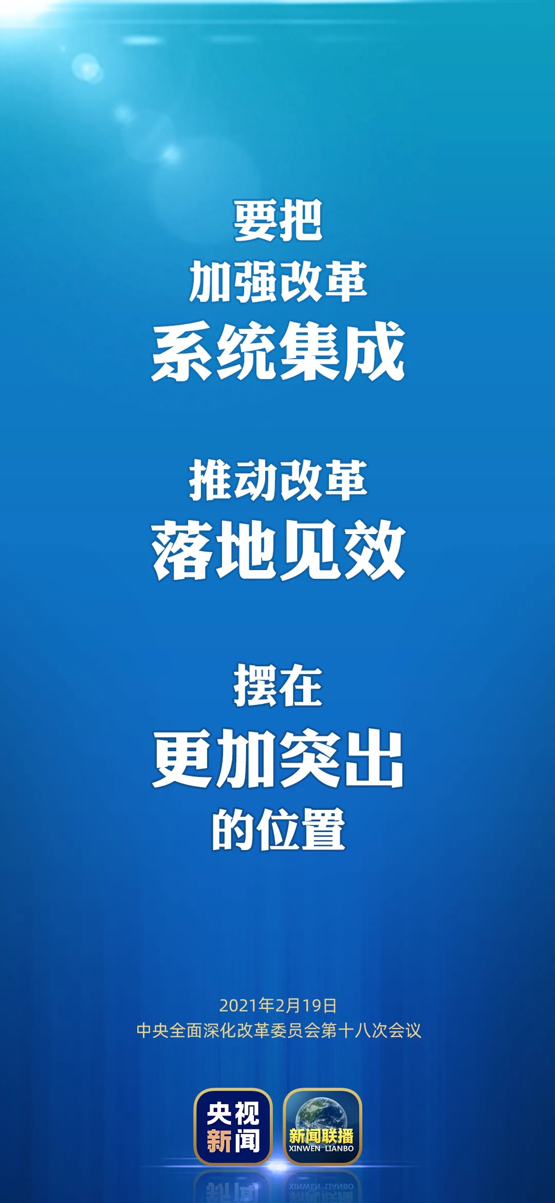 2月19日,中共中央總書記、國家主席、中央軍委主席、中央全面深化改革委員會主任習近平主持召開中央全面深化改革委員會第十八次會議并發(fā)表重要講話。他強調(diào),要完整、準確、全面貫徹新發(fā)展理念,更加精準地出臺改革方案,推動改革向更深層次挺進。來看梳理→