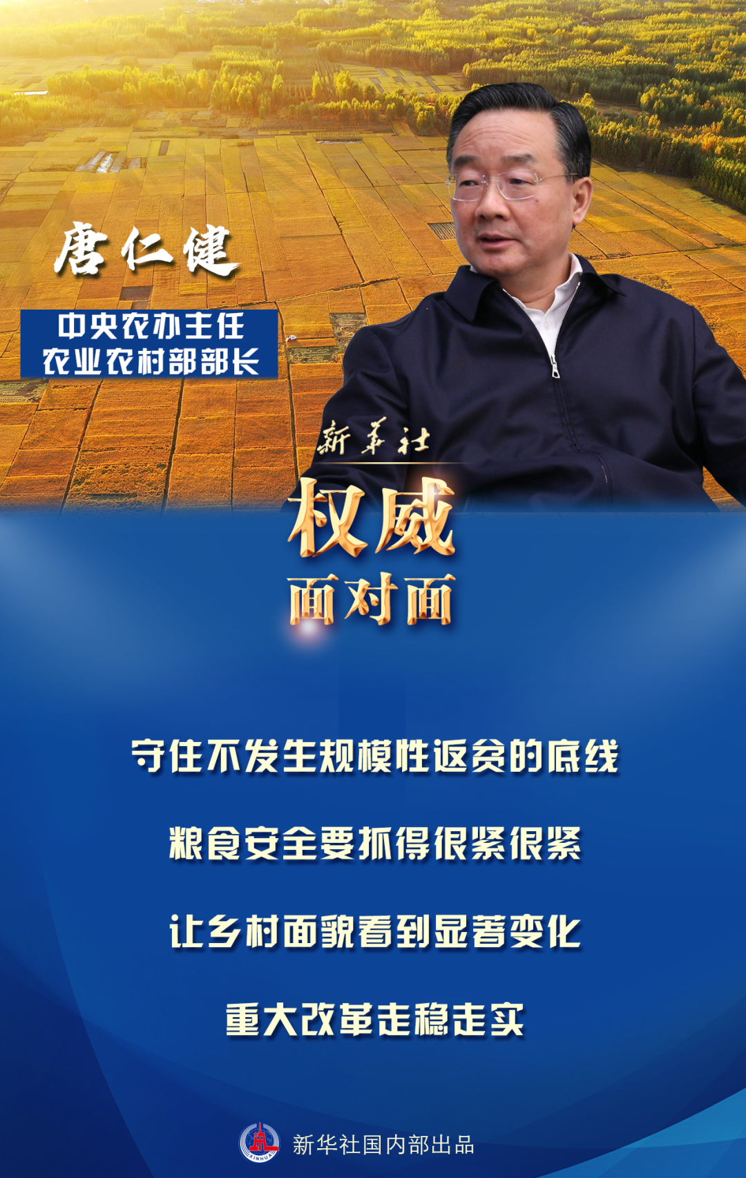 唐仁健:脫貧摘帽不是終點(diǎn),而是新生活、新奮斗的起點(diǎn)。鞏固拓展脫貧攻堅(jiān)成果,做好同鄉(xiāng)村振興有效銜接,是今年和“十四五”時期“三農(nóng)”工作最重要任務(wù)。