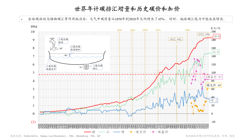 另外,我有兩張圖跟大家分享一下,也是和這個(gè)題目相關(guān)的。這張圖上面藍(lán)線是對(duì)我們環(huán)境長(zhǎng)期的一個(gè)觀測(cè),二氧化碳濃度水平。在夏威夷的莫納羅亞島,從1958年開始有持續(xù)性的觀測(cè),在此之前通過南極冰雪的資料,可以一直追溯到1850年(285PPM)。很有意思1851年全世界第一次工業(yè)博覽會(huì)在倫敦召開,也是一個(gè)工業(yè)時(shí)代到來的標(biāo)志。經(jīng)過這么長(zhǎng)時(shí)間的工業(yè)革命,現(xiàn)在可以看到二氧化碳水平已經(jīng)達(dá)到417PPM。底下這條紅線,是我們自工業(yè)革命以來的全球碳排放,可以看出明顯增速加快。
