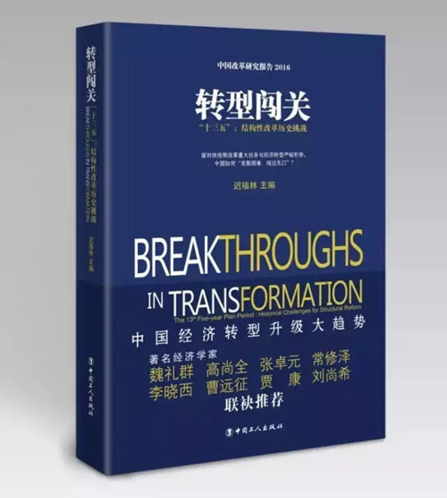2016年2月25日,由中國(海南)改革發(fā)展研究院(以下簡稱中改院)、中國工人出版社主辦的《轉(zhuǎn)型闖關(guān)——“十三五”:結(jié)構(gòu)性改革歷史挑戰(zhàn)》新書發(fā)布會在京舉行。中國行政體制改革研究會會長、中改院董事局主席魏禮群,原國家體改委副主任、中改院名譽院長高尚全,中國經(jīng)濟(jì)體制改革研究會顧問宋曉梧,全國人大常委員會委員、外事委員會副主任委員趙白鴿,中國社會科學(xué)院學(xué)部委員張卓元,商務(wù)部原部長助理黃海,國家發(fā)展和改革委員會經(jīng)濟(jì)研究所教授常修澤,北京師范大學(xué)校學(xué)術(shù)委員會副主任李曉西,中銀國際研究公司經(jīng)濟(jì)學(xué)家曹遠(yuǎn)征等專家出席本次發(fā)布會。