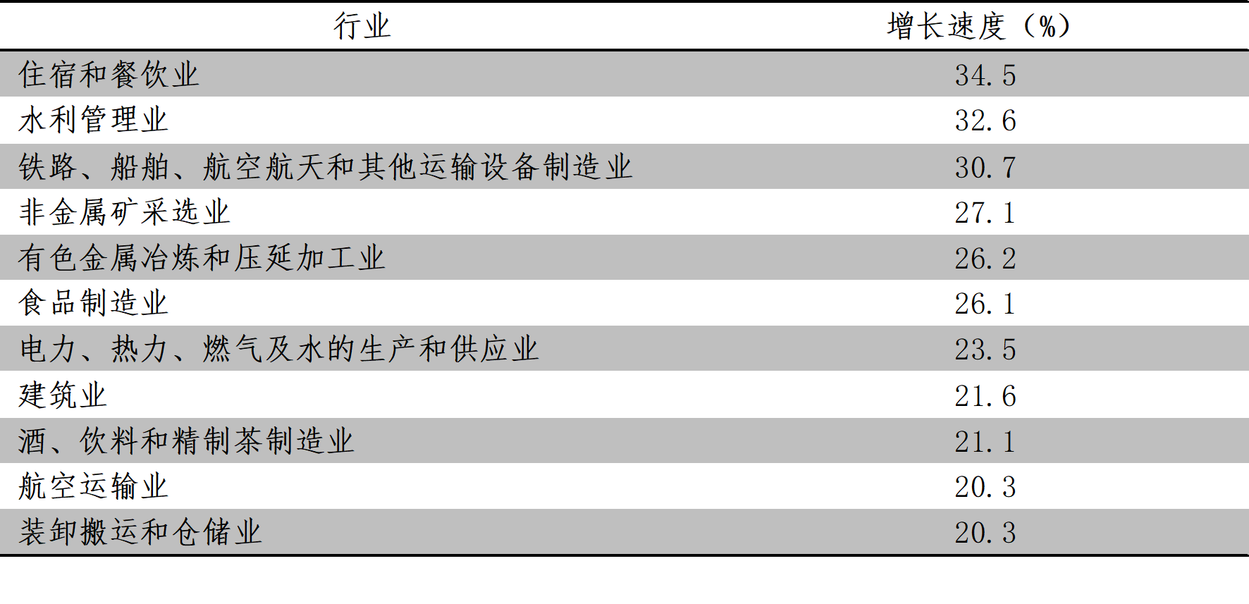 1-8月份,固定資產(chǎn)投資增速超過20%的行業(yè)共11個(gè),即住宿和餐飲業(yè)增長34.5%,水利管理業(yè)增長32.6%,鐵路、船舶、航空航天和其他運(yùn)輸設(shè)備制造業(yè)增長30.7%,非金屬礦采選業(yè)增長27.1%,有色金屬冶煉和壓延加工業(yè)增長26.2%,食品制造業(yè)增長26.1%,電力、熱力、燃?xì)饧八纳a(chǎn)和供應(yīng)業(yè)增長23.5%,建筑業(yè)增長21.6%,酒、飲料和精制茶制造業(yè)增長21.1%,航空運(yùn)輸業(yè)增長20.3%,裝卸搬運(yùn)和倉儲(chǔ)業(yè)增長20.3%。