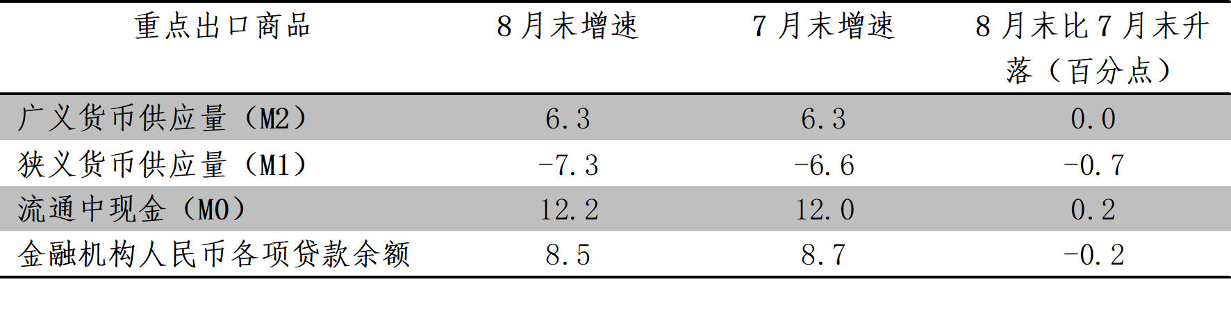 表3. 8月末和7月末主要金融貨幣指標(biāo)同比增速(%)