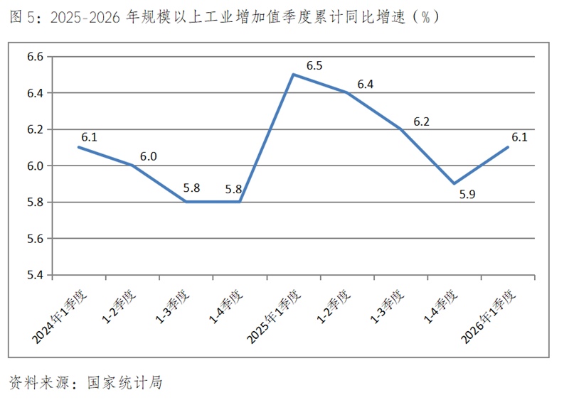 (一)工業(yè)生產(chǎn)增速比上年全年回升,比上年同期回落。一季度規(guī)模以上工業(yè)增加值同比增長(zhǎng)6.1%,比上年全年增長(zhǎng)5.9%回升0.2個(gè)百分點(diǎn),比上年同期增長(zhǎng)6.5%回落0.4個(gè)百分點(diǎn)。與上年同期相比,一季度采礦業(yè)同比增長(zhǎng)6.0%。比上年同期增長(zhǎng)6.2%回落0.2個(gè)百分點(diǎn);制造業(yè)增長(zhǎng)6.4%,比上年同期增長(zhǎng)7.1%回落了0.7個(gè)百分點(diǎn);電力、熱力、燃?xì)饧八a(chǎn)和供應(yīng)增長(zhǎng)4.3%,比上年同期增長(zhǎng)1.9%回升了2.4個(gè)百分點(diǎn)。